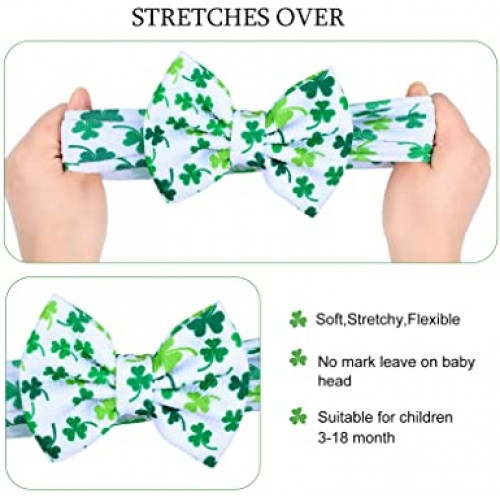 Festival accessories: the green shamrocks patterns are classic St. Patrick’s Day elements, ideal hair accessories for your baby to wear on holidays; They are soft and stretchy, suitable for St. Patrick’s Day party, your girls could wear these for a long time