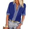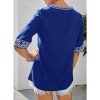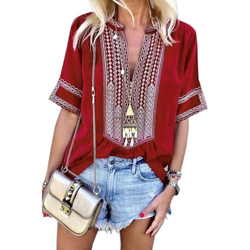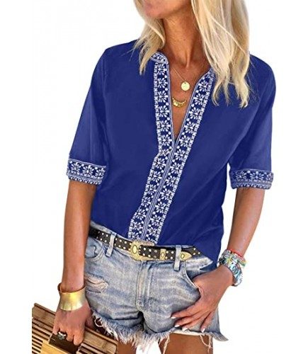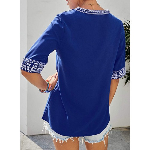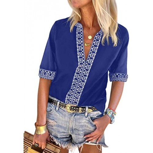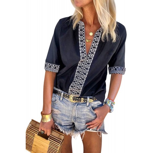 Features: Sexy V Neck, Short 3/4 Sleeve, Boho Print, Embroidered, Regular Fit, Beautiful Pattern, Flowy Tops, Cute T Shirts.