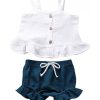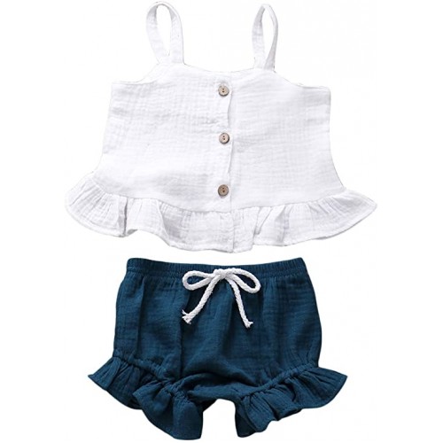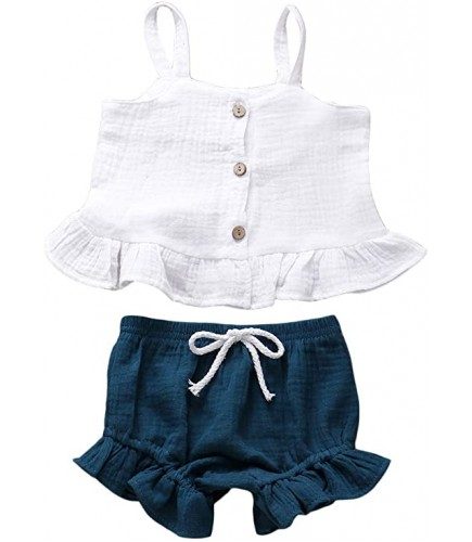 Button Sleeveless Crop Tops + Mini Shorts Outfits 2Pcs Clothing Set