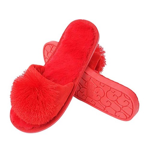 Easy Slip-on Design:They feature an open-toe design and a fuzzy plush fabric that makes them warm, soft and relaxing.