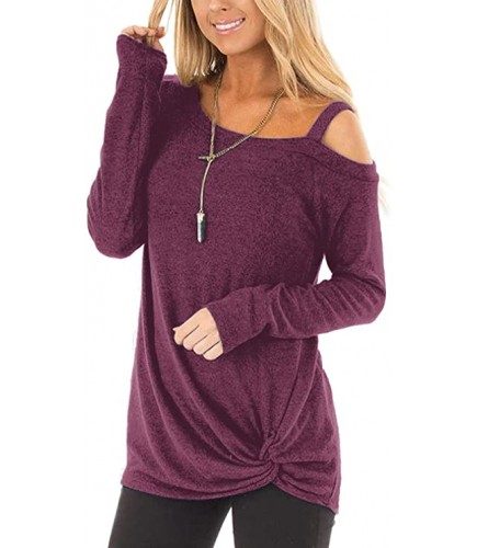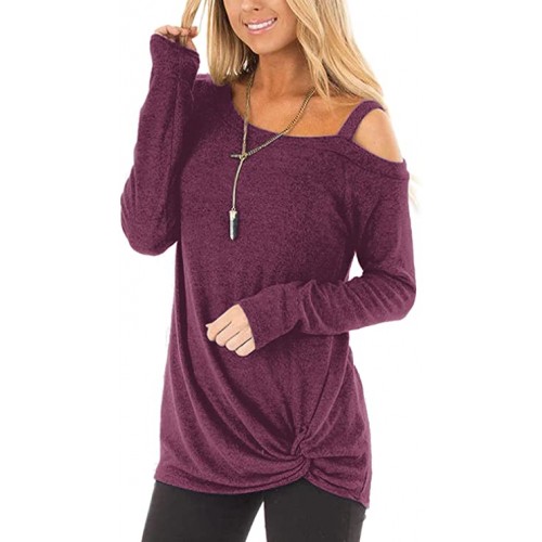 - Plain long sleeve t-shirts, cold shoulder tops with one-side spaghetti straps, side knot with twisted detail at hem, slash neck with off one shoulder.