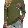 Women Casual Crewneck Long Sleeve Sweatshirt, Loose Side Split Pullover, Tie Dye Tops, Striped Printed Shirts
