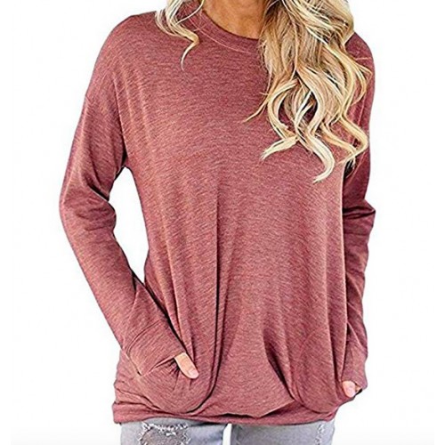 Features: Long Sleeve ,Pullover ,Pull On closure,Solid Color Sweatshirt, Tunic tops,Pocket in side