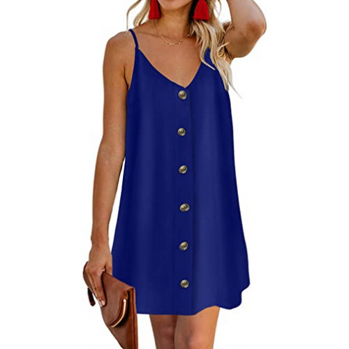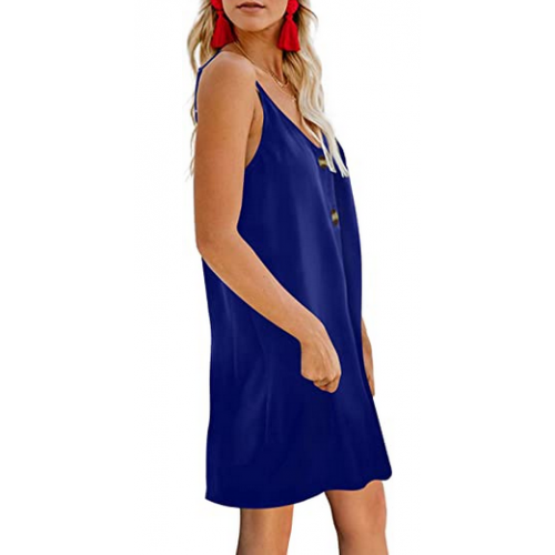 Features:Adjustable Spaghetti Strap,Sexy V Neck Sleeveless, Floral Print,Button Front, Casual Loose Fit Swing Tank Dress