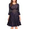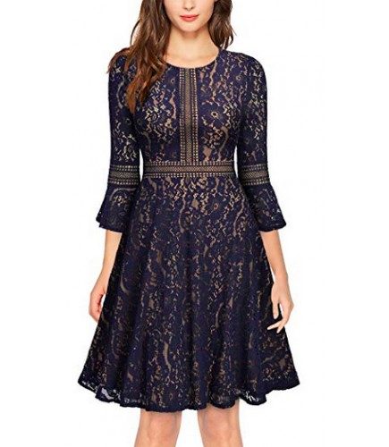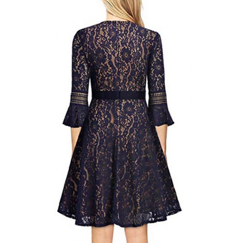 Vintage Full Lace Contrast Flare Sleeve Big Swing A-Line Dress