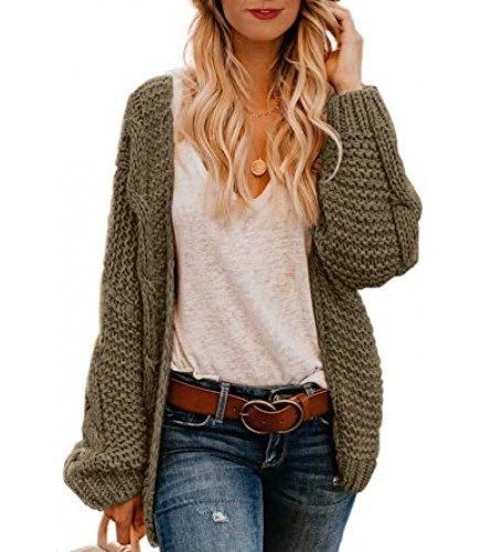 Women Open Front Long Sleeve Chunky Knit Cardigan Sweaters Loose Outwear Coat