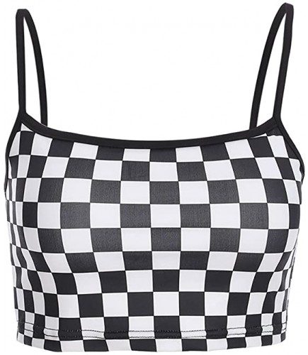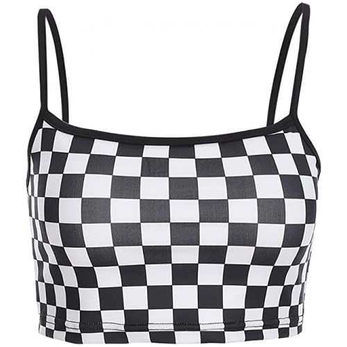 - These Features Included In This Top:Black And White Plaid Checkerboard , sexy off shoulder Spaghetti Strap crop top.