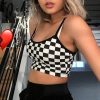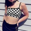 Women Sexy Checkerboard Print Strap Backless Plaid Camis Streetwear Crop Tops