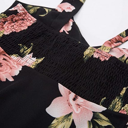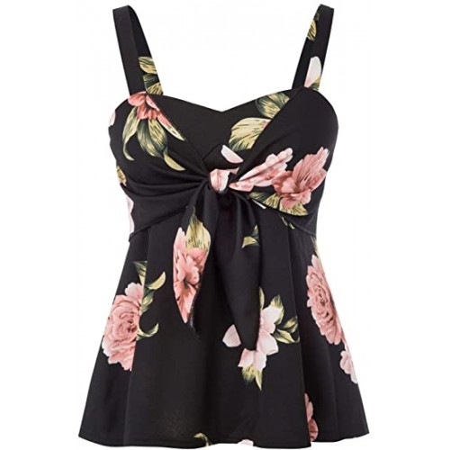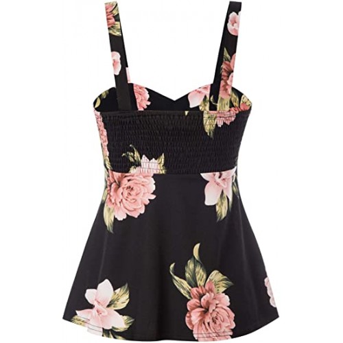 Women Summer Wide Shoulder Straps Tops 50s Floral Fancy Party Casual Elastic Camisole
