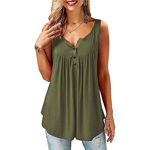 Women V Neck T-Shirt Button Up Tunic Long/Short Sleeve Tops