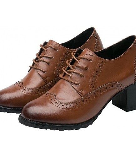 - Designed with perforated features, lace up front, round toe front, stitch details, chunky heel