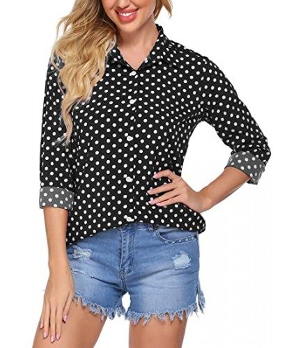 Features: button down, long sleeve, turn down collar, soft chiffon material, casual loose fit, basic plain & polka dot pattern