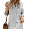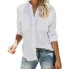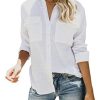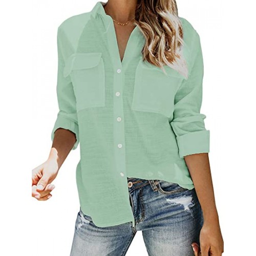 Features: long sleeve, collared, button up, lightweight, cuffed sleeve with roll tap can be 3/4 sleeve, button up, solid color, two pockets at chest, turn down collar, v neck, basic plain shirts