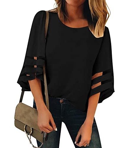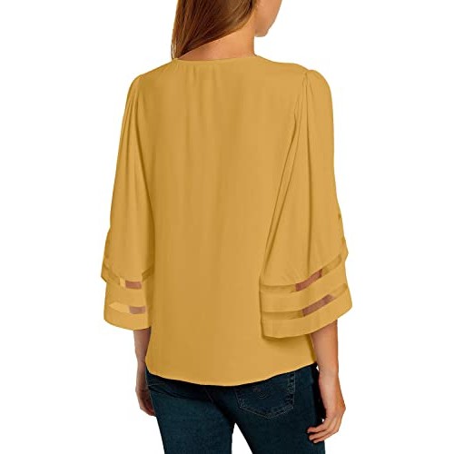 Women casual summer top. V neck. 3/4 bell sleeves.