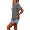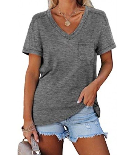 Features: Casual T Shirts with Pocket, V Neck Summer Tops, Plain Basic Tees, Short Sleeve Shirts, Roll Sleeve Loose Fit Tops. Wearing on all seasons especially Spring and Summer.