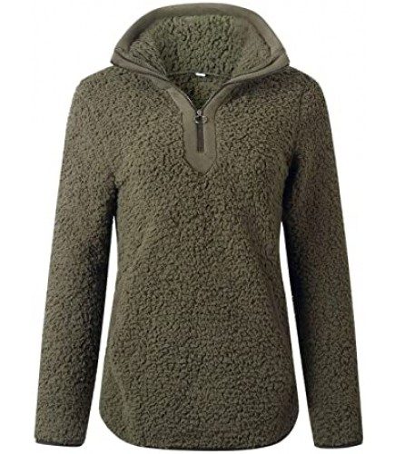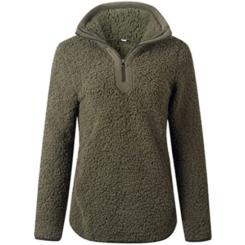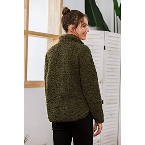 Womens Lightweight 1/4 Zipper Stand Collar Sherpa Fleece Sweatshirts Cozy Outerwear Pullovers with Pockets