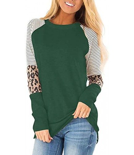 Womens Long Sleeve T Shirts Round Neck Sweatshirts Leopard Print Stripe Leopard Print Tops for Lday