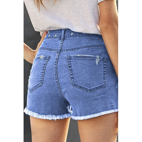 Material: Casual mid waist ripped destroyed shorts jeans, 75%Cotton+ 24%polyester+1%spandex denim shorts, Soft, Comfortable fit, Stretchy and lightweight denim fabric. hand feel soft and stretchy. Comfy to wear all day.