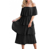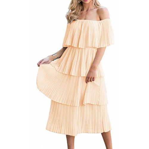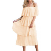 Style:midi dress for women、off the shoulder dress、pink dress、ruffle dress、womens midi dresses,it’s a summer dress for vacation with friends.
