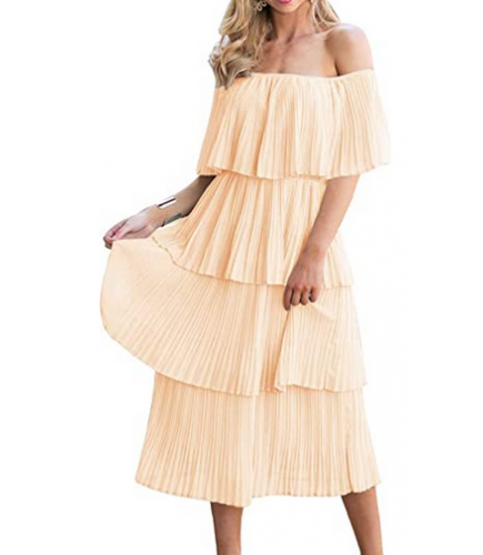 Design:off the shoulder,ruffle,pleated,high waist ,elastic waist,above feet length.