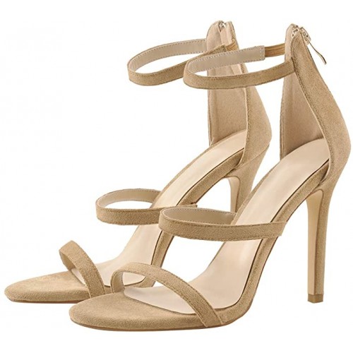 Women’s Open Toe Stiletto High Heel back Zippers Pump Sandals Triple Cross Bands Daily Shoes