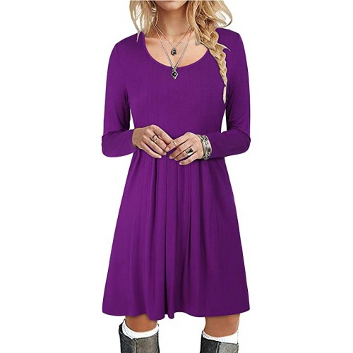 Features: Round Neck, Knee Length, Loose Fit, Soft Fabric, Long Sleeve, Pleated Loose Swing Dress, Midi dress, Knee Length, Leopard Print, Floral Print, Tie Dye Color, Polka Dot Pattern.