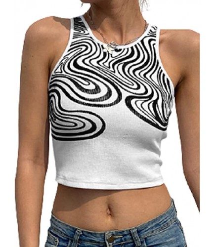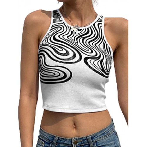 Womens Summer Sleeveless Tank Tops Crew Neck Graphic Print T-Shirt Tie Dye Slim Camisole Vest Top Streetwear