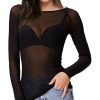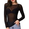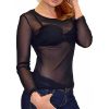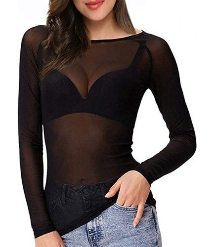 Womens Tops Sexy T-Shirt Clubwear Long Sleeve Tops Mesh Sheer See Through Bodysuit Long Sleeve Tops Tee Transparent Tunic